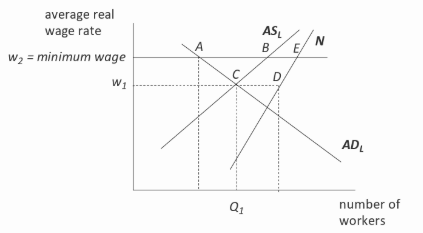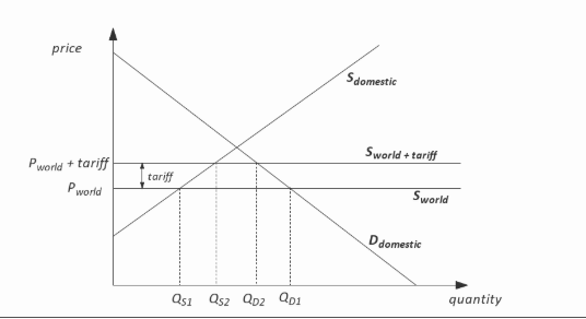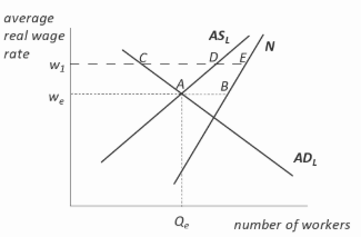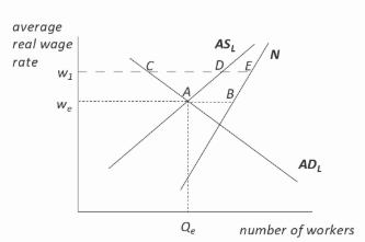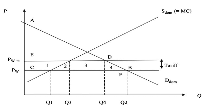 distance between the supply curves is DF . The equilibrium quantity sold after the imposition of
