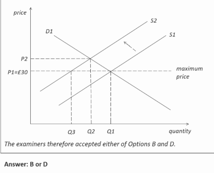 S2 is the supply curve after the indirect tax has been imposed.The annual revenue collected by the government in taxation is :