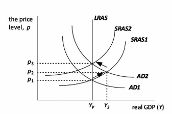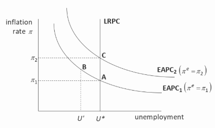 – The Phillips curve shows an inverse relationship between unemployment and inflation, suggesting that when aggregate demand is low, unemployment will be high and inflation will be low; and when aggregate demand is high, unemployment will be low and inflation will be high. This relationship does not suggest that when aggregate demand is low, unemployment will be high and inflation will be zero; and when aggregate demand is high, unemployment will be zero and inflation will be high.If an increase in aggregate demand can lead to an increase in the price level as well as an increase in real output, an injection will not increase real output by the full extent of the multiplier. This corresponds to an upward-sloping AS curve (and does not preclude the co-existence of unemployment and inflation).