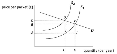 FlagIn the diagram below, S1 is the supply curve for cigarettes before an indirect tax is imposed and