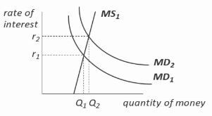 A rise in injections will lead to an increase in national income and hence an increase in the demand for money. If the demand for money and supply of money are both elastic, ie the two curves are relatively flat, then the resulting increase in interest rates will be relatively small. If the demand for investment is interest-inelastic, the demand for investment will not fall very much in response to the slightly higher interest rates.
