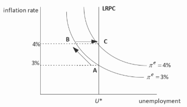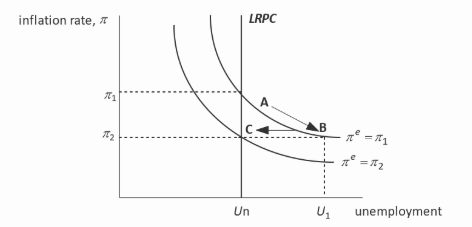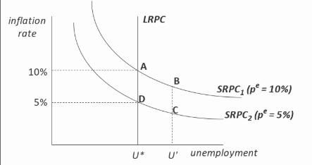 Option D. The (original) Phillips curve shows a trade-off between higher inflation and lower unemployment.