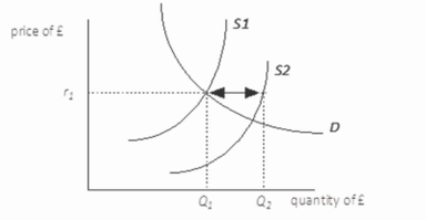 The fall in interest rates as a result of a rise in the money supply will cause a movement downwards along the demand for money curve and result in higher holdings of money. This is because the fall in interest rates reduces the attraction of holding bonds etc. Higher holdings of speculative (or idle) money result in a lower velocity of circulation.Let’s consider why the other options are false: